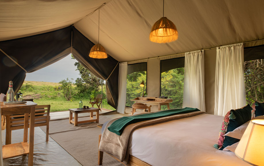 - A seasonal safari camp occupying prime position in the Masai Mara Game Reserve