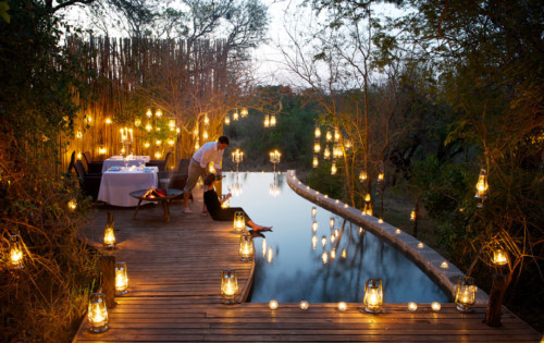 In the Timbavati Private Reserve which shares a boundary with Kruger National Park, Kings Camp faces a waterhole visited by an endless parade of wildlife.
